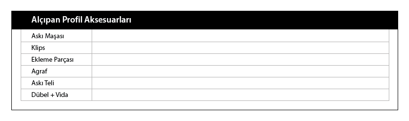 Alçı a Profil Aksesuarları; bölme duvar, giydirme duvar ve asma tavan sistemlerinin yapımında kullanılan galvanizli çelik sac profilleridir. Geniş ürün yelpazemizde dilediğiniz ölçüde profil ve aksesuarı bulabilirsiniz. İstediğiniz alçı levha profili ihtiyacınızı sipariş formu bölümünden veya iletişim bilgilerimizi kullanarak bize iletebilirsiniz.