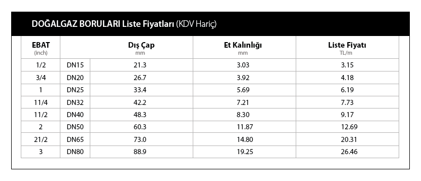 Doğal gaz borularının rahatça ayırt edilebilmesi için doğal gaz üretim standardının TS EN 10208-2' ye uygun olduğu HN (normalize edilmiş) özelliğine sahip olduğu, stensil ile boru üzerine yazılmıştır.