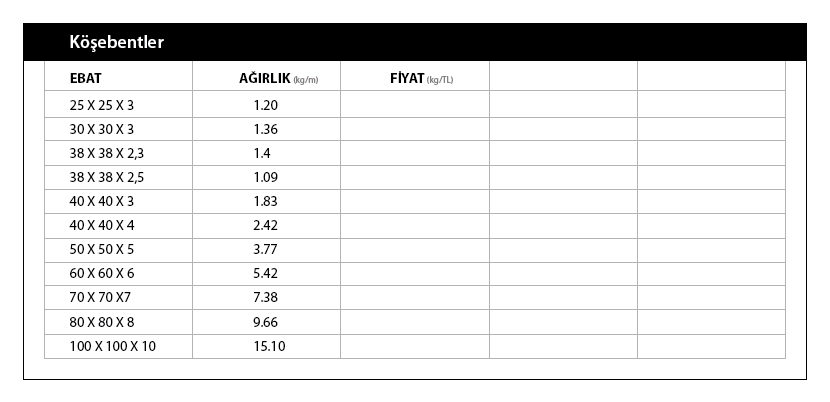 Bir çok alanda kullanılan paslanmaya karşı yüksek dirençli ürünlerdir. Köşebent, çeliğin en çok kullanımı gerçekleşen alanlarında kullanılmaktadır. Köşebentler, L şeklinde olanları günümüz sahalarında...